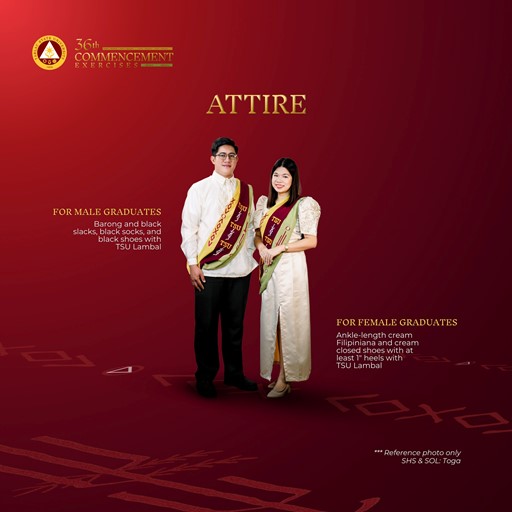 To all candidates for graduation, please be informed of the schedule of activities, graduation fee payment details, prescribed attire, and important reminders via the uploaded social media cards.