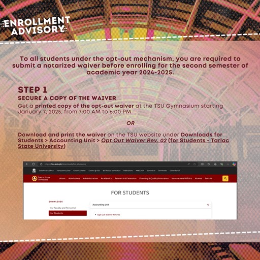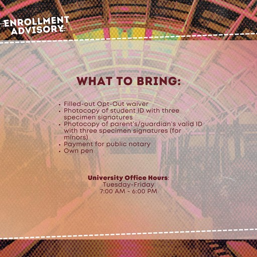 To all students under the opt-out mechanism, you are required to submit a notarized waiver before enrolling for the second semester of academic year 2024-2025.