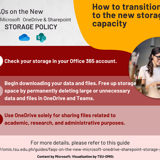 Due to these changes to the Microsoft 365 pooled storage policy for educational institutions, all students, faculty, and personnel are encouraged to check how much data storage they are using and safeguard important files by downloading them before July 2025.